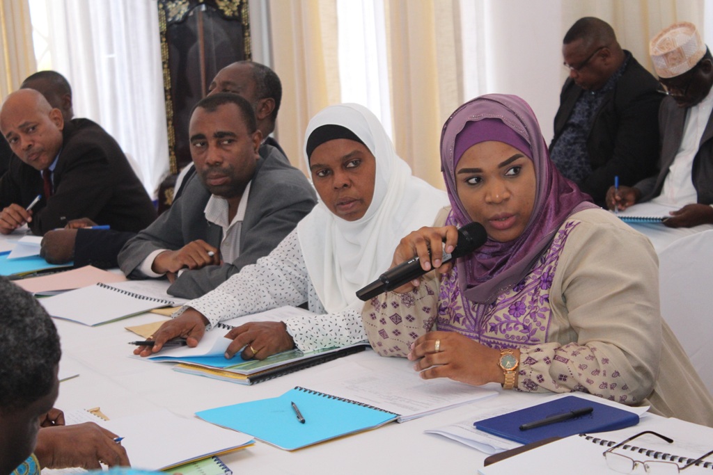 MKURUGENZI Mtendaji wa Mfuko wa Hifadhi ya Jamii Zanzibar Bi. Sabra Issa Machano, akichangia wakati wa mkutano huo wa Utekelezaji wa Mpango Kazi wa Wizara ya Fedha na Mipango Zanzibar kwa mwezi wa Julai 2018 hadi March 2019, uliofanyika katika ukumbi wa Ikulu Ndogo Kibweni Zanzibar.