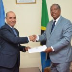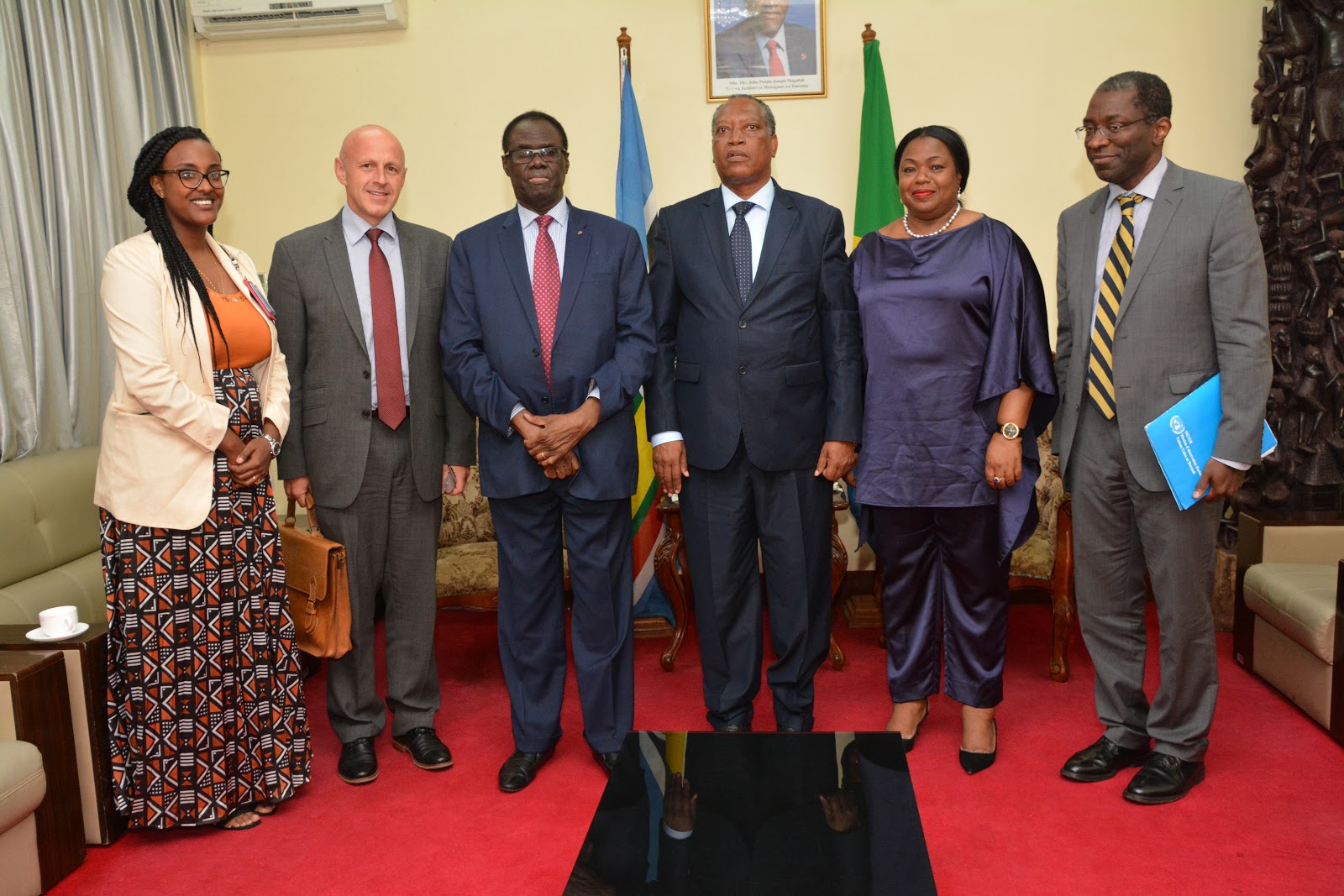 Waziri wa Mambo ya Nje na Ushirikiano wa Afrika Mashariki Profesa Palamagamba John Kabudi (Mb.) (kulia) akiwa katika picha ya pamoja na Mhe. Mikel Kafando ambaye ni Rais Mstaafu wa Burkina Faso na Mjumbe Maalum wa Katibu mkuu wa Umoja wa Mataifa kuhusu Burundi.