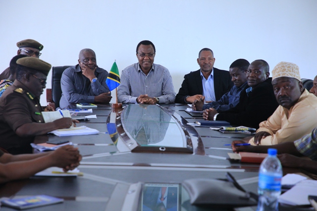 Waziri wa Ardhi, Nyumba na Maendeleo ya Makazi, William Lukuvi (katikati), akifafanua jambo katika Kikao cha kutatua migogoro mbalimbali ya ardhi Mjini Mrogoro, ambacho pia kilichohudhuriwa na Waziri wa Mambo ya Ndani ya Nchi, Kangi Lugola (kushoto meza kuu). Kikao hicho pia kilihudhuriwa na maafisa wa Magereza na Manispaa ya Morogoro. Kulia meza kuu ni Mkuu wa Mkoa wa Morogoro, Dkt. Stephen Kebwe (katikati). Picha na Wizara ya Mambo ya Ndani ya Nchi.