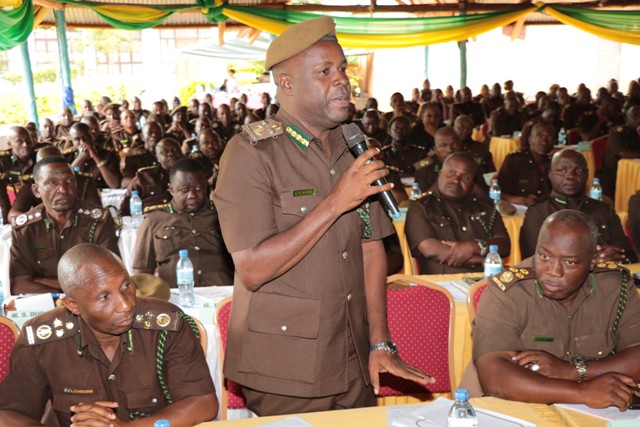 Mkuu wa Kitengo cha Mafunzo katika Jeshi la Magereza, Kamishna Msaidizi Mwandamizi wa Magereza, Charles Novart akitoa ufafanuzi katika Kikao cha Wakuu wa Magereza.