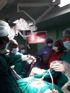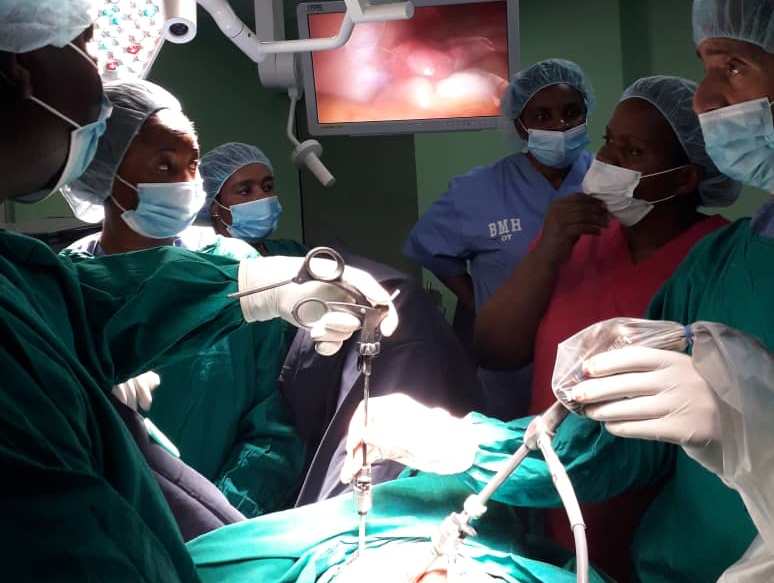 Madaktari Bingwa wa Magonjwa ya Akinamama Wakifanya Upasuaji wa Kutumia Matundu Madogo (Endoscopic Surgery) Katika Hospitali ya Benjamin Mkapa Hivi Karibuni.