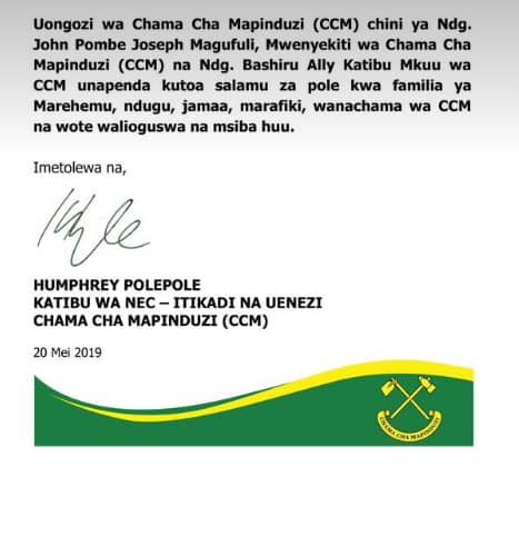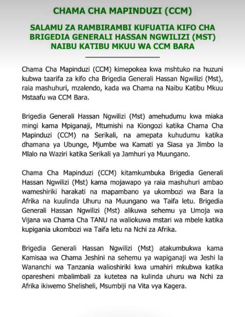 MchanganyikoCCM YATUMA SALAMU ZA RAMBIRAMBI KUFUATIA KIFO CHA BRIGEDIA GENERALI HASSAN NGWILIZI (MST) NAIBU KATIBU MKUU WA CCM BARA Last updated: 2019/05/20 at 1:41 PM Alex Sonna 6 years ago Share SHARE Alex Sonna May 20, 2019 May 20, 2019 Share this Article Facebook Twitter Email Print Previous Article RAIS WA ZANZIBAR DK. SHEIN AONGOZA WANANCHI WA ZANZIBAR KATIKA MAZIKO YA WAZIRI WA ZAMANI WA SMZ MAREHEMU ALI JUMA SHAMUHUNA KIJIJI CHA DONGE MKOA WA KASKAZINI UNGUJA LEO 20-5-2019 Next Article MAVUNDE -VIJANA WATHUBUTU KUANZISHA MIRADI MIDOGO MIDOGO BADALA YA KULALAMA VIJIWENI