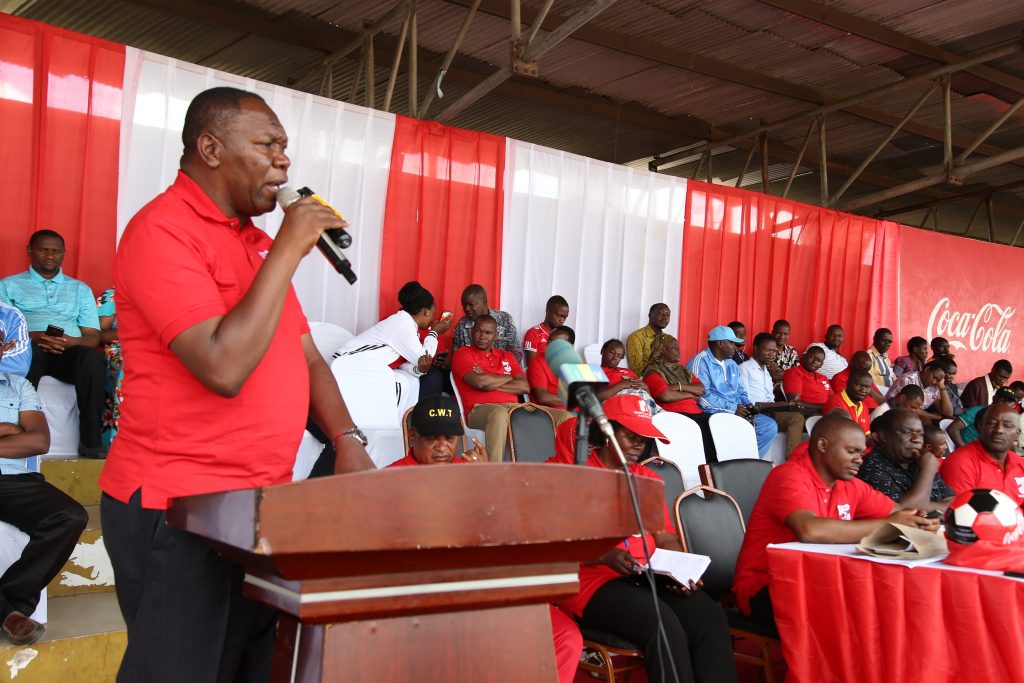 Mkuu wa Mkoa wa Tabora Aggrey Mwanri akizundua jana mjini Tabora mashindano ya Copa Coca Cola Mkoani humo kwa mwaka 2019 kwa niaba ya Waziri wa Nchi , Ofisi ya Rais , Tawala za Mikoa na Serikali za Mitaa .