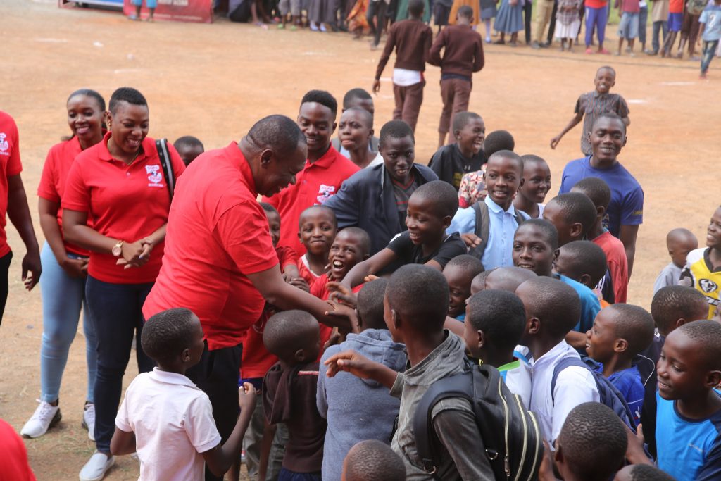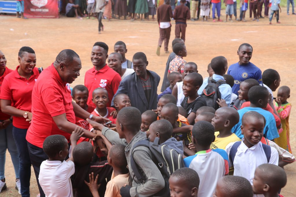 Mkuu wa Mkoa wa Tabora Aggrey Mwanri akisalamia na watoto waliohudhuria uzinduzi wa mashindano ya Copa Coca Cola Mkoani humo kwa mwaka 2019 jana katika Uwanja wa Ally Hassan Mwinyi mjini Tabora.