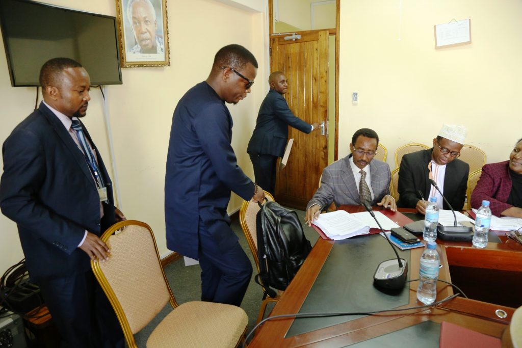 Mwenyekiti wa Kamati ya Bunge ya Haki, Maadili na Madaraka ya Bunge, Mhe. Emmanuel Mwakasaka akiongoza kikao cha utovu wa nidhamu dhidi ya Mbunge wa Shinyanga Mjini, Mhe. Stephen Masele kilichofanyika leo katika Ofisi za Bunge Jijini Dodoma.