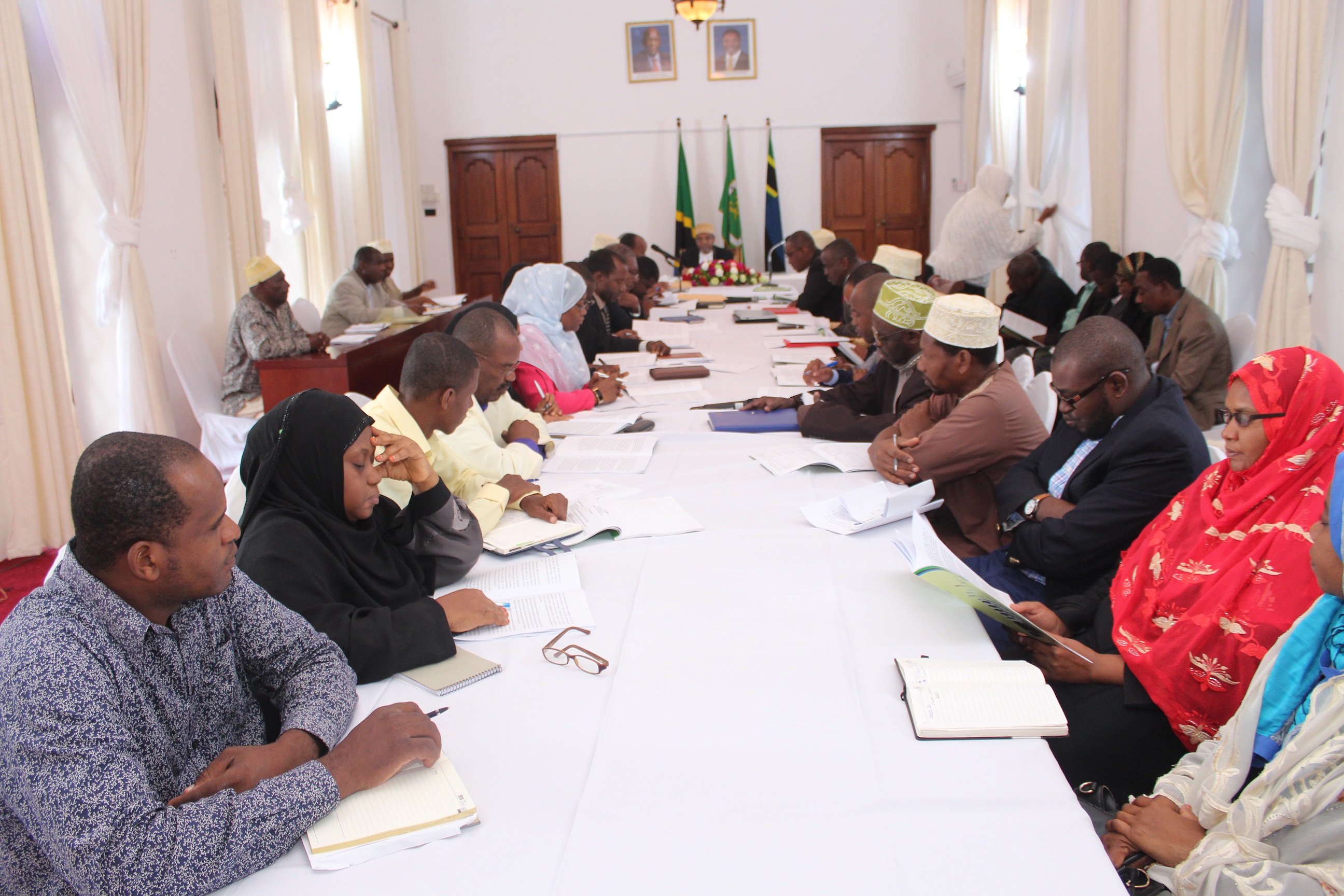 WAZIRI wa Katiba na Sheria Zanzibar Mhe. Khamis Juma Mwalim, akisoma Taarifa ya Utekelezaji wa Mpango Kazi wa Wizara yake kuazia mwezi julai 2018 hadi March 2019, katika ukumbi wa Ikulu Ndogo Kibweni Zanzibar, kushoto Mwanasheria Mkuu wa Serikali Mhe. Said Hassan Said