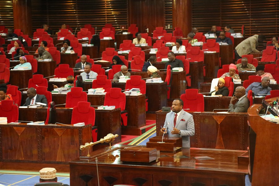 Waziri wa Mifugo na Uvuvi mhe. Luhaga Mpina akiwasilisha makadirio ya mapato na matumizi ya Wizara hiyo kwa mwaka wa Fedha 2019/2020.