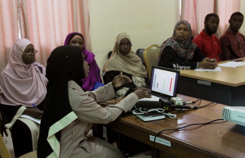 Afisa Lishe Wilaya ya Mjini Fatma Ally Said akitoa elimu ya matone ya Vitamin A kwa Wandishi wa Habari na walimu wa Madrasa ili kusaidia kutoa elimu hiyo kwa wanachi.