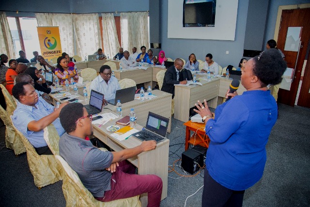 Mtaalam Wa Mawasiliano kutoka UNICEF Tanzania, Usiah Nkoma akitoa mada katika semina ya wahariri iliyofanyika katika Hoteli ya Regency Kwa ajili ya kusaidia kampeni ya Jiongeze Tuwavushe Salama yenye lengo LA kuzuia vifo vya mama wajawazito na watoto