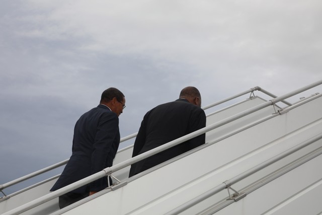 Magufuli akiwa ameongoza na na Rais Mstaafu wa Awamu ya Nne Dkt Jakaya Mrisho Kikwete na Makamu wa Rais wa CCM (Bara) Ndg. Philip Mangula wakielekea kwenye ndege katika Uwanja wa Ndege wa Kimataifa wa Julius Myerere jijini Dar es salaam tayari kuelekea Afrika ya Kusini asubuhi hii ambapo kesho watahudhuria sherehe za kuapishwa kwa Rais wa nchi hiyo Mhe. Cyril Ramaphosa mjini Pretoria