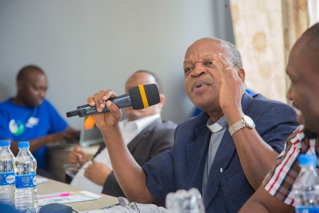 Mmoja wa viongozi wa dini, mchungaji Christosiler Kalata kutoka KKKT- Dayosisi ya Mashariki na Pwani akichangia mada katika semina ya Jiongeze Tuwavushe Salama