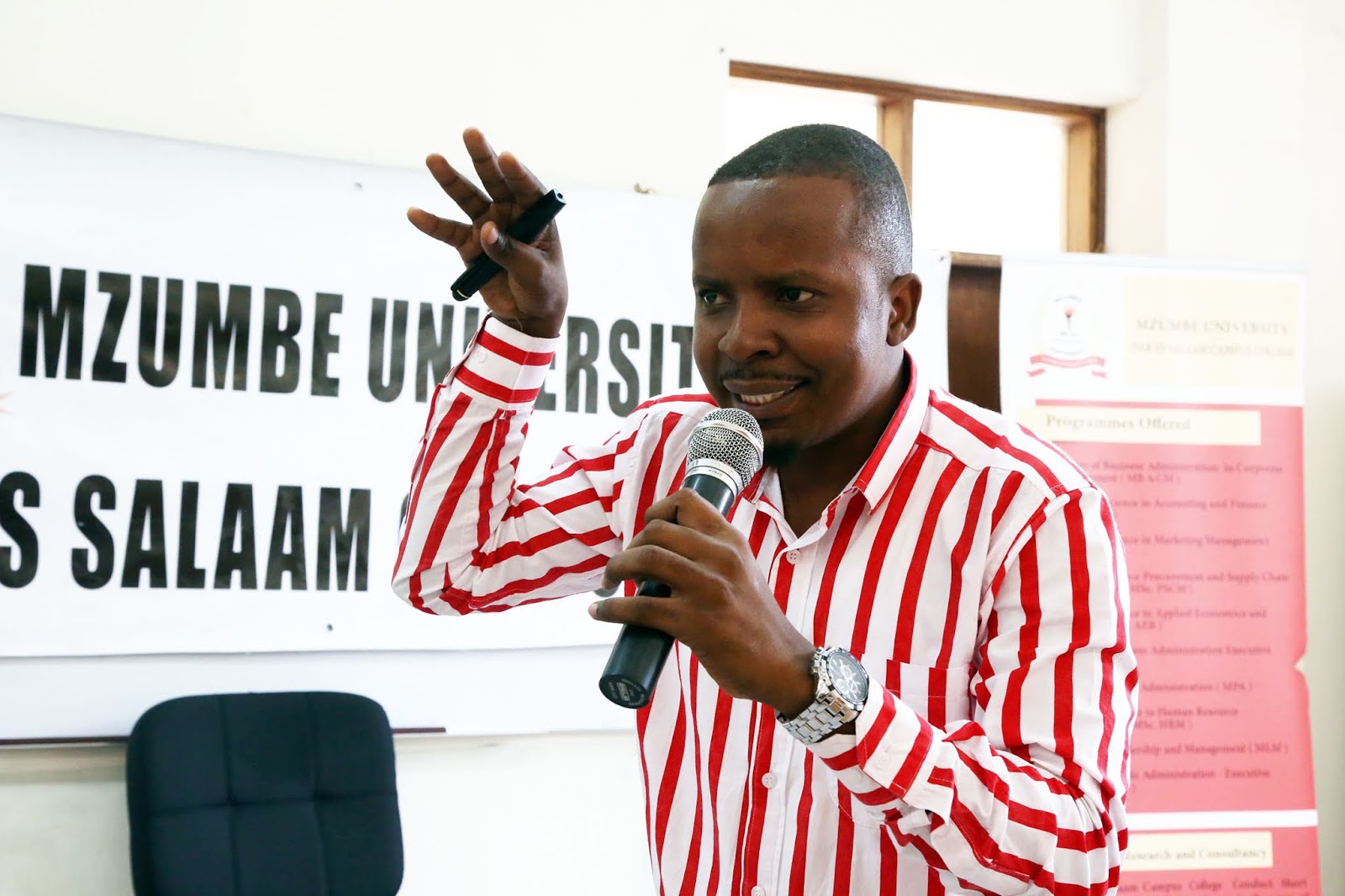 Hozza Mbura akitoa mada kuhusu Fursa.