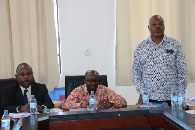 Kaimu Mkurugenzi Mtendaji wa Bodi ya Wataalam wa Ununuzi na Ugavi (PSPTB) Bw.Godfrey Mbanyi akizungumza na Viongozi wa Wizara ya Habari Utamaduni Sanaa na Michezo wakati Bodi hiyo ilipoendesha mafunzo ya siku mbili kuhusu Manunuzi ya Umma kuanzia Mei 27- 28, 2019 Jijini Dodoma. Katikati ni Mkurugenzi Idara ya Utawala na Rasilimali Watu wa Wizara hiyo Bw.Orest Mushi, na Kushoto ni Kaimu Mkurugenzi Idara ya Ununuzi na Ugavi wa Wizara hiyo Bibi Cecilia Kasonga.