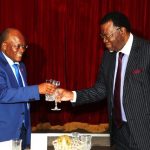 Rais wa Jamhuri ya Muungano wa Tanzania Mheshimiwa Dkt. John Pombe Magufuli akiagana na mwenyeji wake Rais wa Namibia Hage Geingob mara baada ya kuweka shada la maua katika Makaburi ya Mashujaa wa Namibia yaliyopo katika eneo la Heroes’ Acre