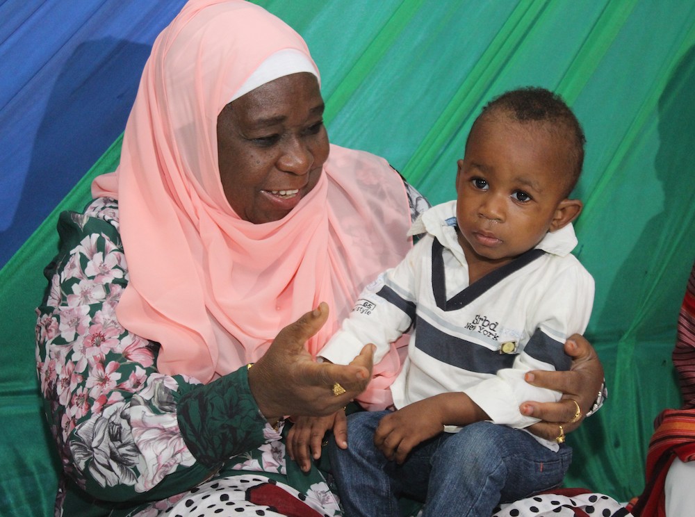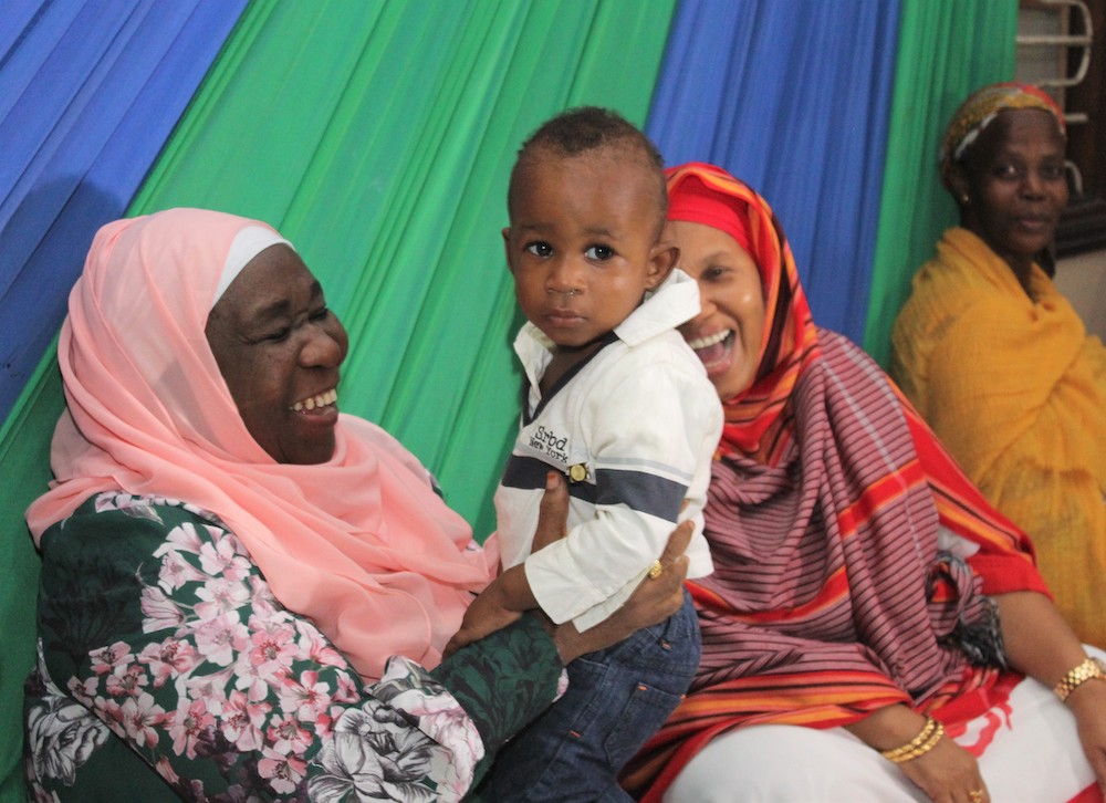 MKE wa Rais wa Zanzibar Mama Mwanamwema Shein, akiwa na Mtoto anayelelewa katika Nyumba ya Watoto Mazizini Zanzibar Mtoto Nadir Abdalla mwenye umri wa mwaka moja na miezi mitano,baada ya kumalizika kwa hafla hiyo ya futari maalum aliyowaandalia katika makazi yao mazizini Zanzibar.