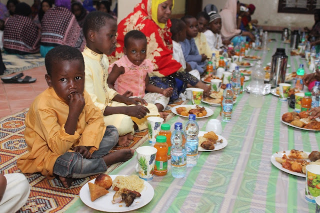 WATOTO wa Nyumba ya Watoto Mazizuini Zanzibar wakiwa katika futari ilioandaliwa na Mke wa Rais wa Zanzibar Mama Mwanamwema Shein, iliofanyika katika makazi yao mazizini Zanzibar.