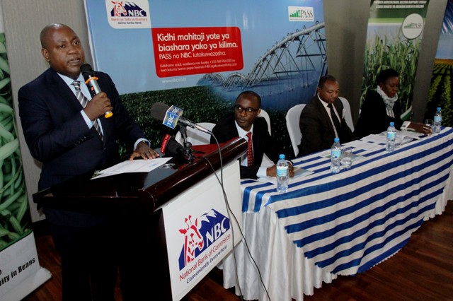 Mkurugenzi Mtendaji wa Benki ya NBC, Theobald Sabi (wa pili kushoto), akibadilishana hati za mkataba wa makubaliano ya ushirikiano wa miaka mitano na Mkurugenzi Mtendaji wa Asasi ya Kusaidia Sekta Binafsi ya Kilimo (PASS), Nicomed Bohay, makubaliano yatakayoiwezesha NBC kusaidia mnyororo wa thamani wa sekta ya kilimo biashara nchini. NBC pia ilipokea mfano wa hundi ya Dola 1,000,000 kutoka PASS zitakazotumika kama dhamana katika mikopo ya kilimo itakayotolewa na benki hiyo. Hafla ilifanyika jijini Arusha leo. Kushoto ni Mkurugenzi wa Biashara wa NBC, Elvis Ndunguru na Ofisa Mtendaji Mkuu wa PASS, Anna Shenalingigwa.