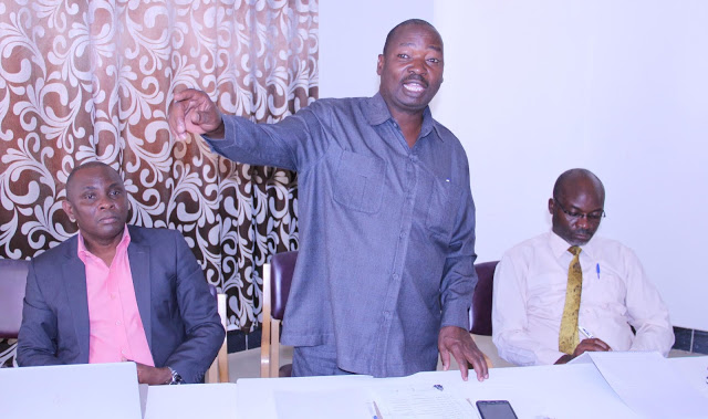 Katibu Tawala Wilaya ya Shinyanga, Boniface Chambi akitambulisha na kuzindua Mradi wa Kusaidia Utekelezaji wa Mpango wa Kitaifa wa Kuzuia Ukatili Dhidi ya Wanawake na Watoto katika halmashauri ya wilaya ya Shinyanga unaotekelezwa na Shirika la Kijamii la Women Fund Tanzania. Kushoto ni Mkuu wa Progamu kutoka Women Fund Tanzania,Carol Francis Mango,kulia ni Kaimu Mkurugenzi halmashauri ya wilaya ya Shinyanga,Deus Mhoja . Picha zote na Kadama Malunde – Malunde1 blog