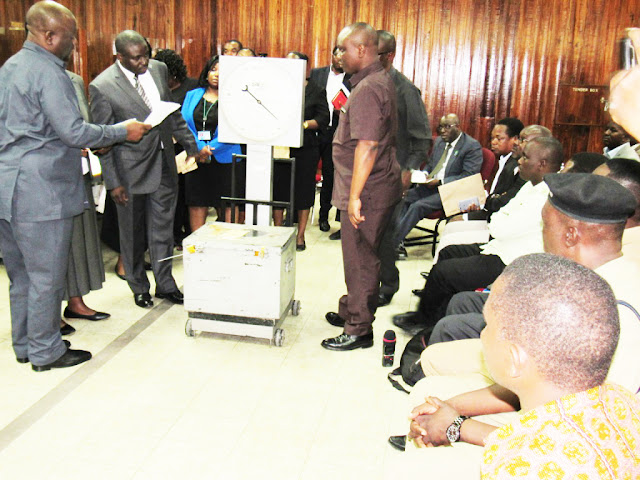 Viongozi mbalimbali akiwemo Waziri wa Madini, Mkuu wa Mkoa Mwanza, John Mongella wakishuhudiano vipimo vya madini hayo kabla ya kufanyika makabidhiano.