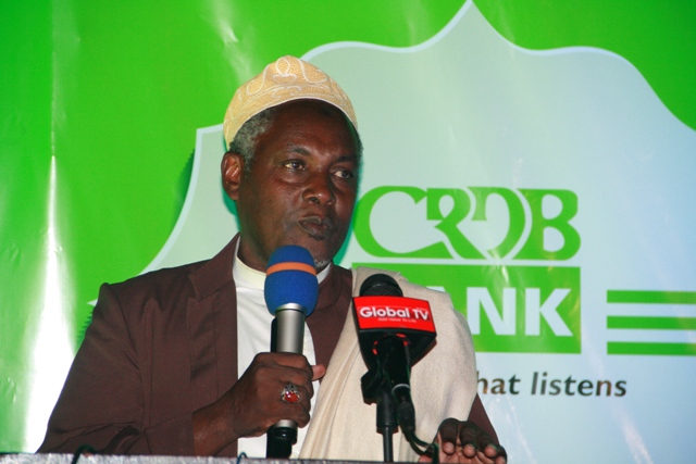 Mwakilishi wa Sheikh Mkuu wa Tanzania Sheikh Hamid Masud Jongo akitoa dua kwa ajili ya futari hiyo iliyoandaliwa na benki ya CRDB kwenye hoteli ya Serena jijini Dar es salaam.