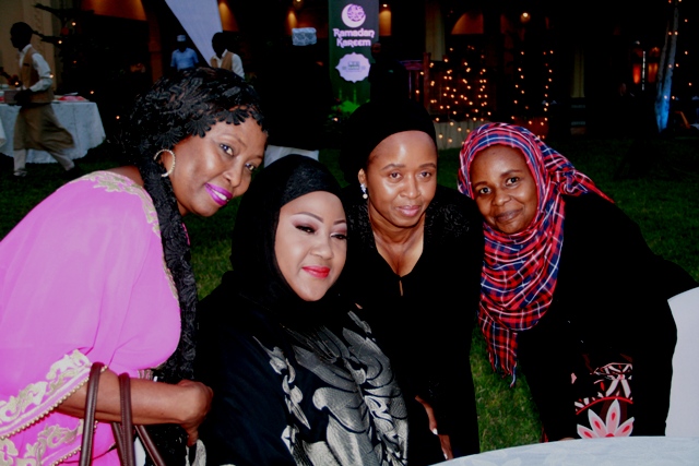 Naibu Waziri wa Fedha na Mipango Dkt. Ashatu Kijaj, Waziri wa maliasili na Utalii Dk. Khamis Kigwangalla Mwenyekiti wa Bodi ya Wakurugenzi ya CRDB Bw. Ally Laay, Mkurugenzi Mtendaji wa CRDB Abdulmajid Nskela na Kamanda wa Polisi Mstaafu Kanda ya Dar es salaam Suleiman Kova wakizungumza mara baada ya kufuturu.