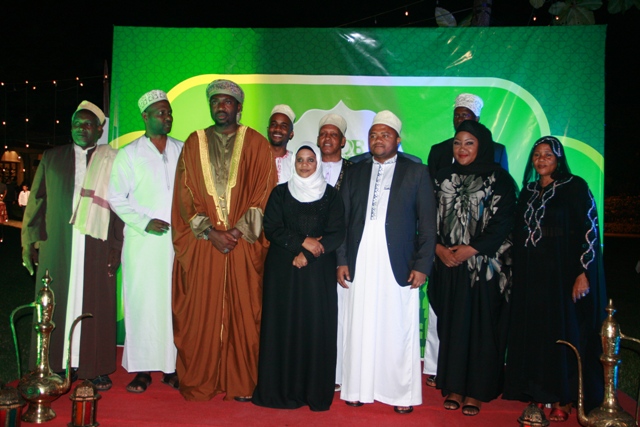Mwakilishi wa Sheikh Mkuu wa Tanzania Sheikh Hamid Masud Jongo akitoa dua kwa ajili ya futari hiyo iliyoandaliwa na benki ya CRDB kwenye hoteli ya Serena jijini Dar es salaam.