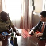 Waziri Mkuu, Kassim Majaliwa akisalimiana na Kamishina Jenerali wa Magereza, Phaustine Kasike wakati alipowasili kwenye viwanja vya Gereza la wilaya ya Ruangwa kufungua Gereza hilo, Juni 3, 2019. Katikati ni mkewe Mary.(Picha na Ofisi ya Waziri Mkuu)