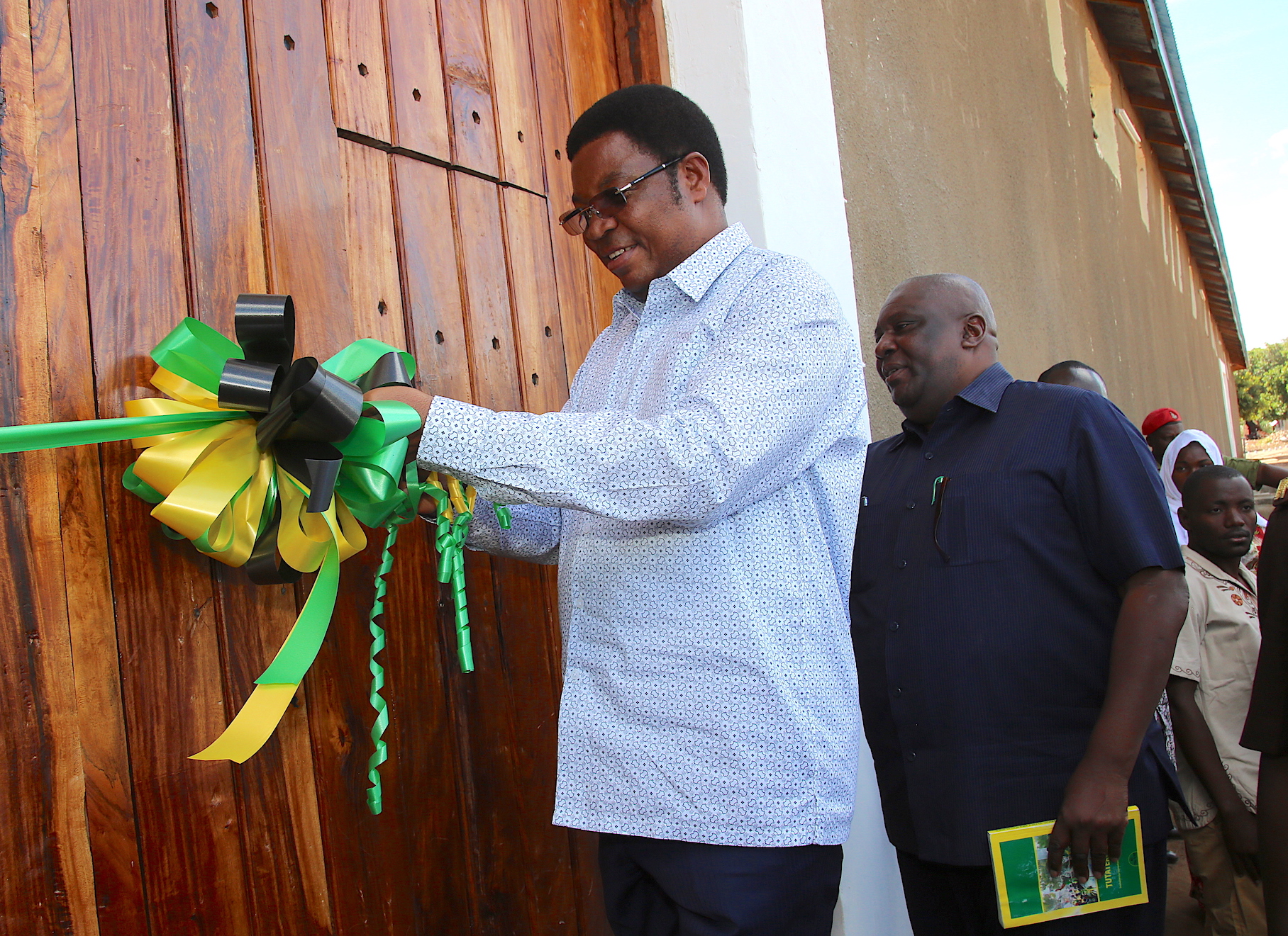 Waziri Mkuu, Kassim Majaliwa akifungua Gereza la Wilaya ya Ruangwa Juni 3, 2019. Kulia ni Waziri wa Mambo ya Ndani ya Nchi, Kangi Lugola. (Picha na Ofisi ya Waziri Mkuu)