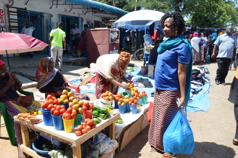 Mkazi wa mjini Singida akiwa amenunua mahitaji yake na kubeba katika