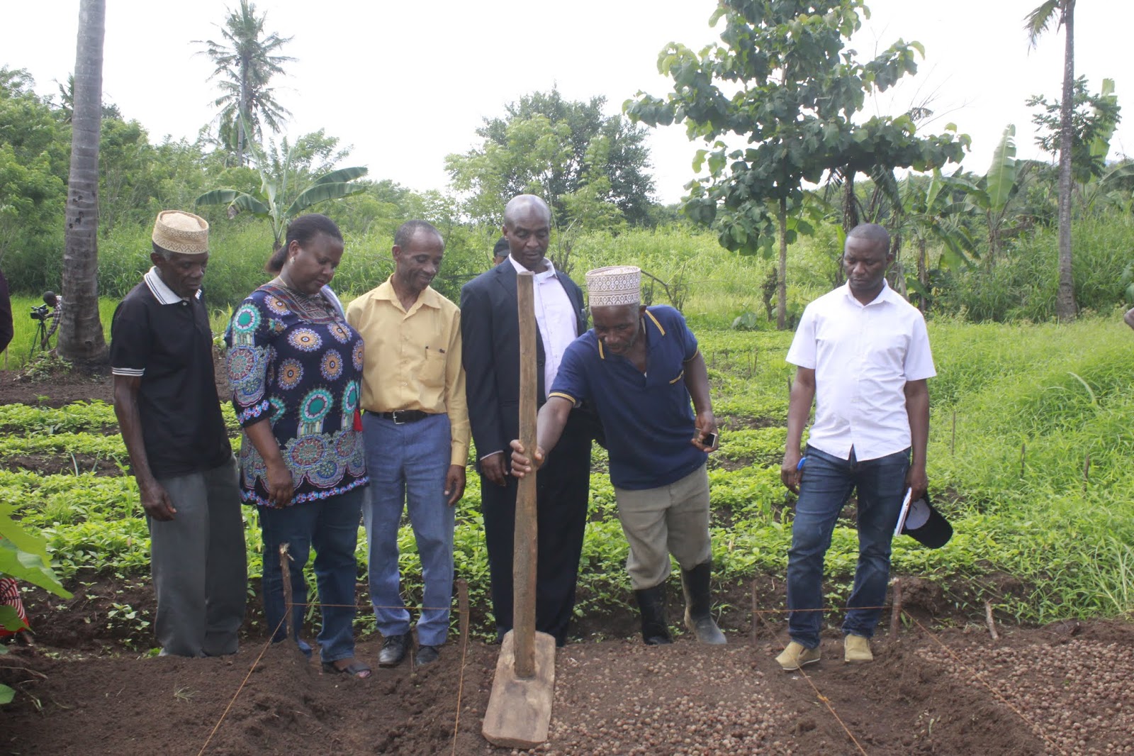 katikati akionyeshwa namna miti ya mitiki inavyopandwa wakati