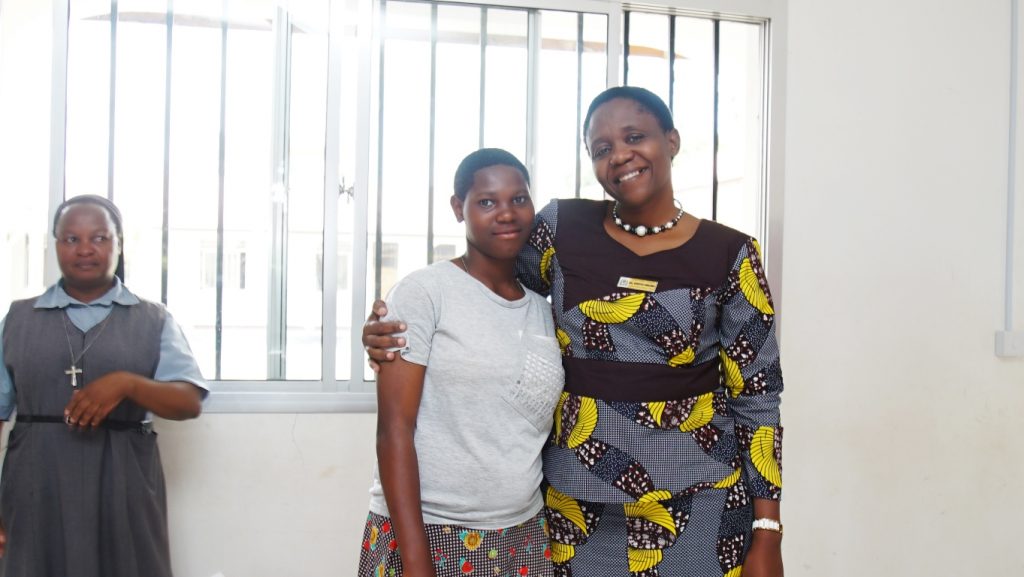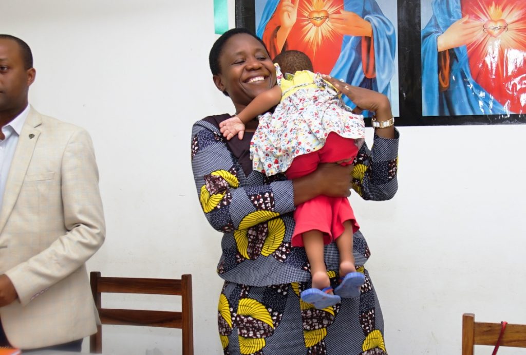 Gwajima akifurahi katika picha ya Pamoja na mtoto Maria wa kituo cha