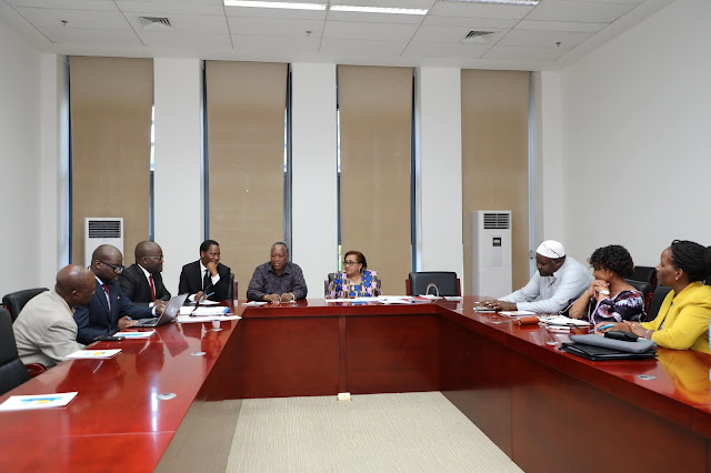 | Maafisa wa Jumuiya ya Maendeleo ya Nchi za Kusini mwa Afrika SADC walioambatana na Dkt. Stagomena Tax wakisikiliza kwa makini mkutano huo. |