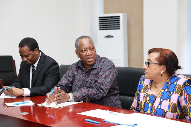 | Waziri wa Mambo ya Nje na Ushirikiano wa Afrika Mashariki prof. Palamagamba John Kabudi (Mb) (katikati) akimsikiliza Katibu Mtendaji wa wa Jumuiya ya Maendeleo ya Nchi za Kusini mwa Afrika SADC Dkt. Stagomena Tax (kulia) wakati wa kikao cha awali cha mashauriano kuhusu mkutano wa SADC unaotarajiwa kufanyika Nchini Tanzania August,2019,kushoto ni Katibu Mkuu wa Wizara ya Mambo ya Nje na Ushirikiano wa Afrika Mashariki Dkt. Faraji Mnyepe.Kikao hicho kimefanyika katika ukumbi wa Kimataifa wa Julius Nyerere (JNICC), Dar Es Salaam, June 05,2019 |