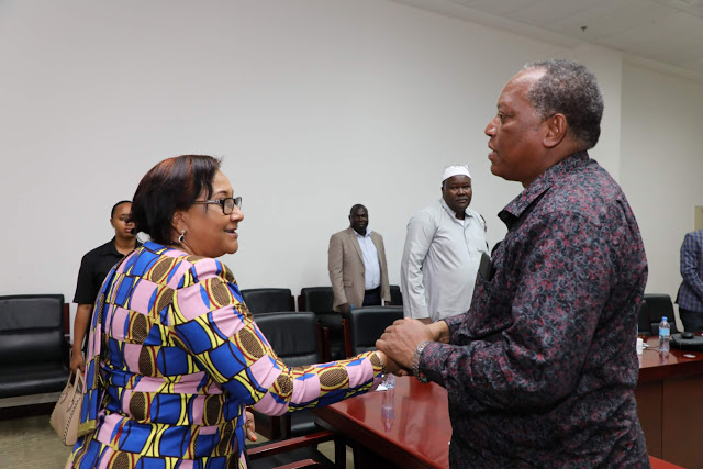 Waziri wa Mambo ya Nje na Ushirikiano wa Afrika Mashariki, Prof. Palamagamba John Kabudi (Mb.) akisalimiana na Katibu Mtendaji wa wa Jumuiya ya Maendeleo ya Nchi za Kusini mwa Afrika SADC, Dkt Stagomena Tax kabla ya kuanza kikao cha awali cha mashauriano kuhusu mkutano wa SADC unaotarajiwa kufanyika Nchini Tanzania August,2019. Kikao hicho kimefanyika katika ukumbi wa Kimataifa wa Julius Nyerere (JNICC), Dar Es Salaam, June 05,2019