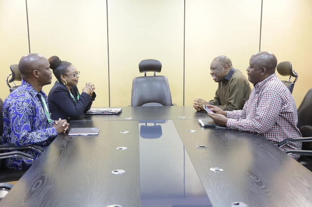 Kaimu Mhariri Mtendaji wa magazeti ya serikali (TSN), ambaye pia ni Meneja Masoko na Mauzo, Bw, Januarius Maganga(wapili kulia), akizungumza jambo na Meneja Kiongozi Uhusiano wa Mfuko wa Hifadhi ya Jamii kwa Watumishi wa Umma (PSSSF), Bi. Eunice Chiume, (wakwanza kushoto), wakati alipotembelea kampuni hiyo jijini Dar es Salaam Juni 11, ikiwa ni ziara ya kujenga mahusiano lakini pia kueleza shughuli za Mfuko huo ambao umeanza kutekeelza majukumu yake Agosti 2018 baada ya serikali kuiunganisha Mifuko minne ya Hifadhi ya Jamii ya PSPF, LAPF, PPF na GEPF.