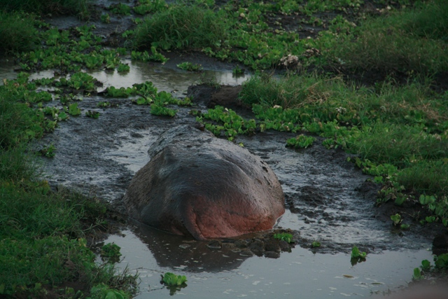 Mmoja wa viboko akiwa amejituliza katika dimbwi la maji kwenye mto huo.