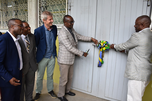 | Mratibu wa taasisi ya Wataalamu wastaafu nchini Uholanzi(Netherlands Senior Experts),Wim Bredewold(kushoto) akizungumza wakati wa uzinduzi wa kituo hicho ndani ya Chuo cha Ufundi Arusha. |