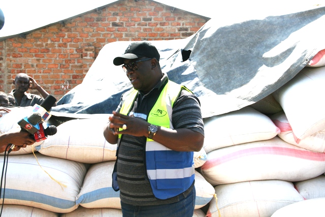 Mkuu wa Wilaya ya Nkasi Mkoani Rukwa Mh. Asid Mtanda akiwaelezea waandishi wa habari kuhusu shehena ya mahindi iliyokutwa imetelekezwa katika bandari bubu hiyo na watu wasiofahamika, baada ya kugundua Mkuu wa wilaya hiyo anatembelea eneo hilo, Shehena hiyo ilikuwa inasafirishwa kwenda DRC Congo kupitia bandari bubu ya Kirando.