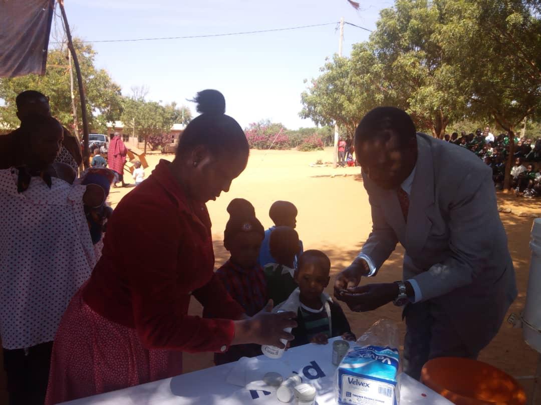 Mkuu wa Wilaya ya Simanjiro Mkoani Manyara, mhandisi Zephania Chaula akizindua chanjo ya watoto kwenye maadhimisho ya siku ya mtoto wa Afrika