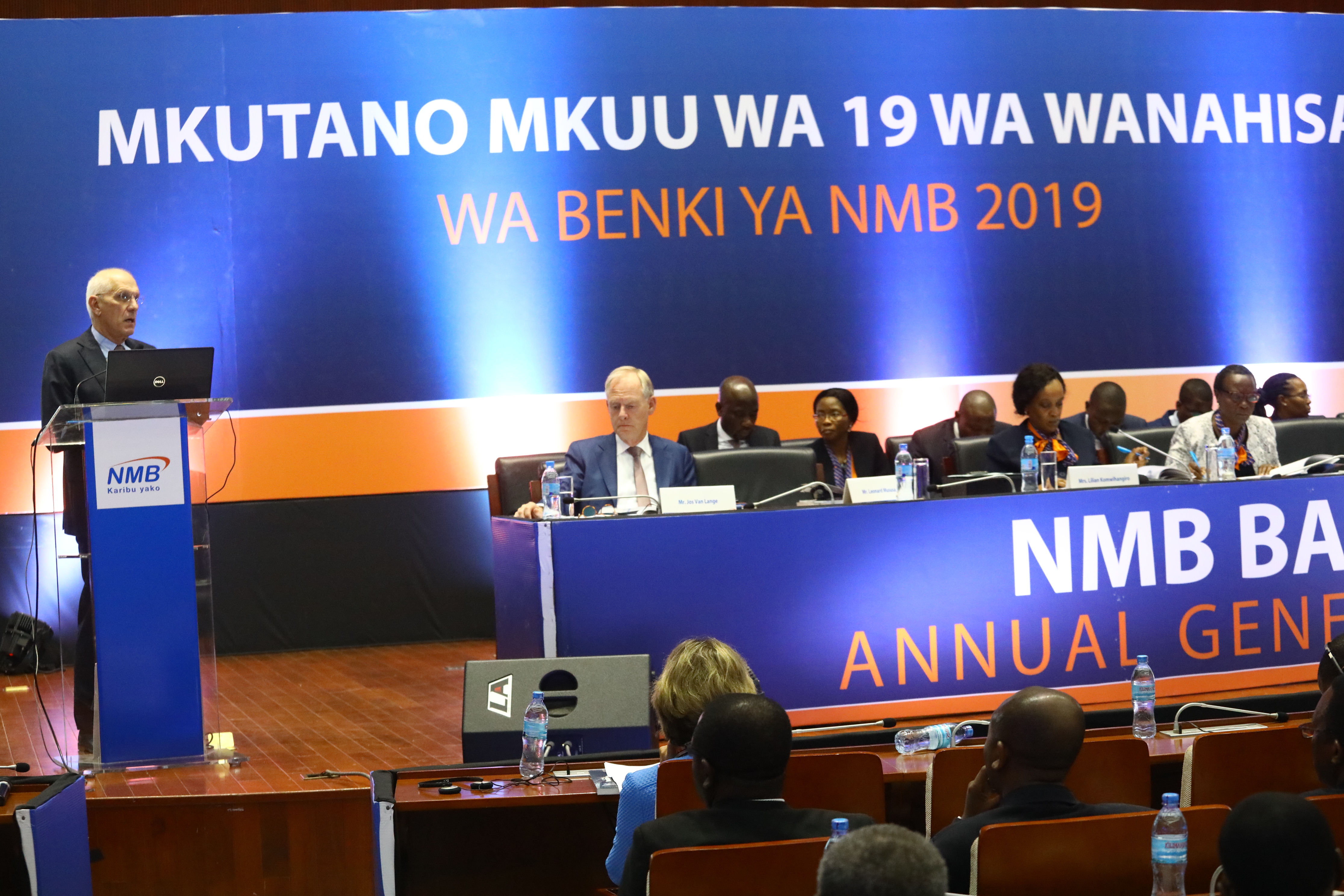 Kaimu Mkurugenzi Mtendaji wa Benki ya NMB Albert Jonkergouw akizungumza wakati wa Mkutano Mkuu wa 19 wa wanahisa wa Benki ya NMB uliofanyika jijini Dar es Salaam, jana