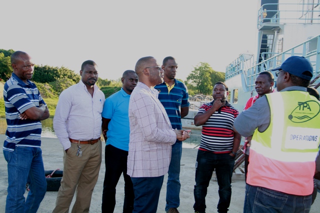 Meneja wa Bandari (TPA) Kanda ya ziwa Nyasa Bw. Abeid Galus akizungumza na mabaharia wa meli ya MV Ruvuma.