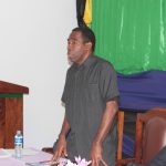 Meneja wa Bandari (TPA) Kanda ya ziwa Nyasa Bw. Abeid Galus akizungumza na mabaharia wa meli ya MV Ruvuma.