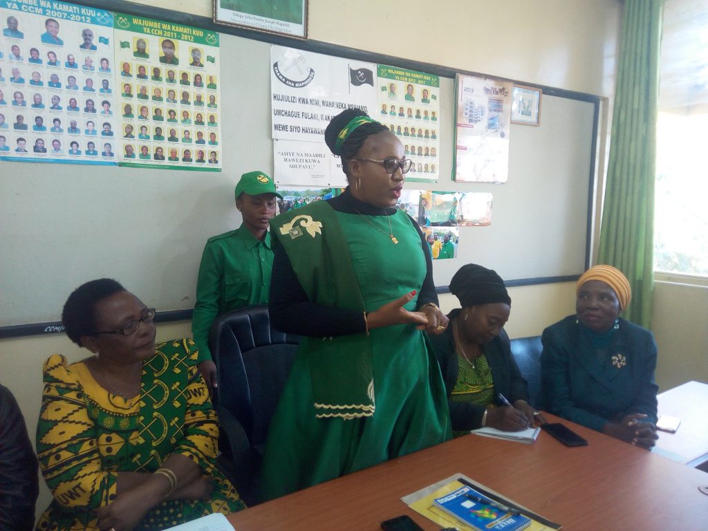 Katibu wa Umoja wa Wanawake Mkoa wa Iringa, Chiku Masanja akiwatambulisha baadhi ya wajumbe wa kamati ya uwt mkoa wa Iringa kwa Naibu Katibu Mkuu wa Umoja wa Wanawake Tanzania (UWT), Jeska Mbogo .