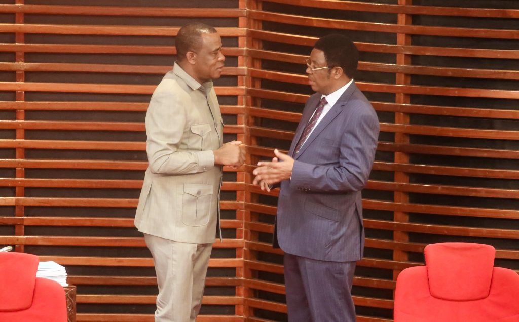 Waziri Mkuu Kassim Majaliwa, akizungumza na Mbunge wa Sengerema, William Ngeleja, Bungeni jijini Dodoma Juni 18.2019. (Picha na Ofisi ya Waziri Mkuu).