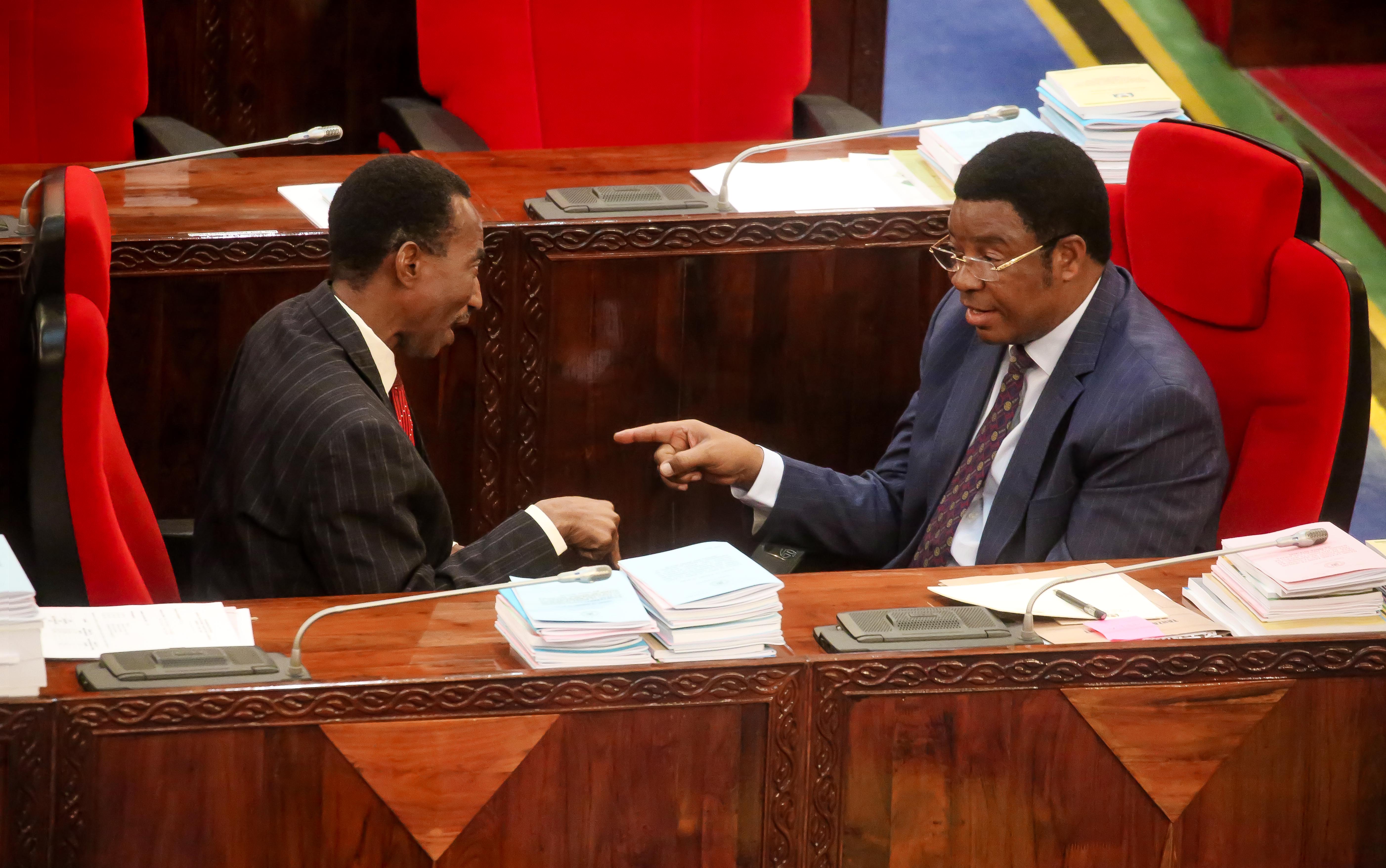 Waziri Mkuu Kassim Majaliwa, akizungumza na Mbunge wa Kijitoupele, Shamsi Vuai Nahodha, Bungeni jijini Dodoma Juni 18.2019. (Picha na Ofisi ya Waziri Mkuu)