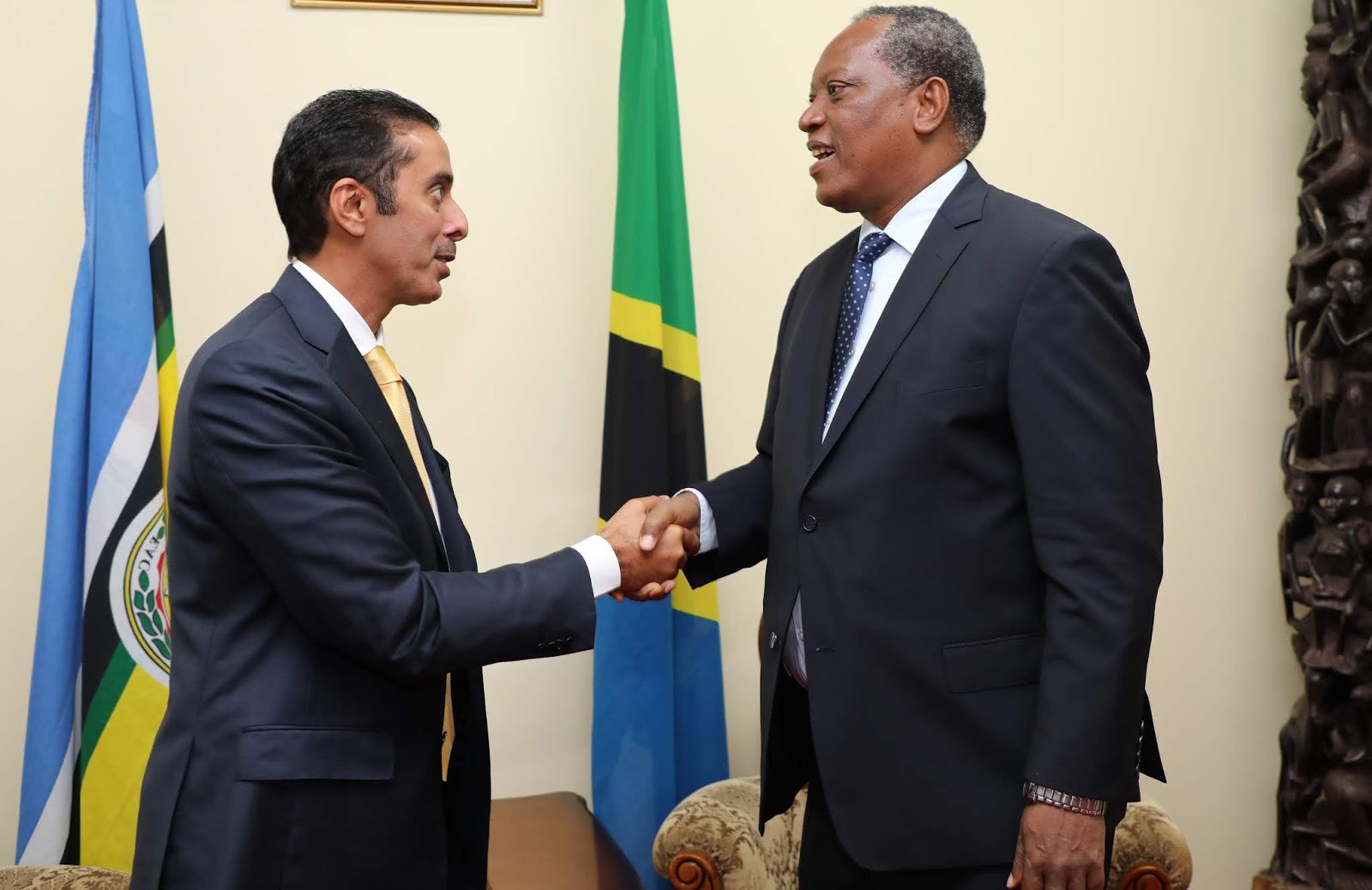 Waziri wa Mambo ya Nje na Ushirikiano wa Afrika, Prof. Palamagamba John Kabudi (Mb.) akimwelezea jambo Balozi Hamad Suliman Al – Mashaan |