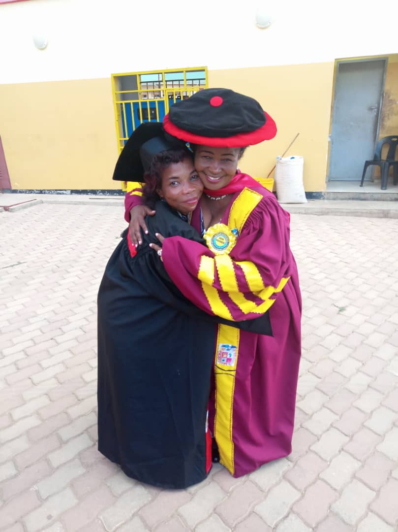Rais wa Umoja wa Wanamuzi Tanzania (TAMUFO) Dkt.Donald (kushoto), akimpongeza Mbunge wa Viti Maalumu (CCM) Mkoa wa Iringa, Ritta Kabati baada ya Chuo cha Africa Graduate University cha Lusaka nchini Zambia kumtunuku Tuzo ya Heshima ya Udaktari (PhD) katika mahafali ya 37 ya chuo hicho yaliyofanyika mwishoni mwa wiki nchini Zambia.