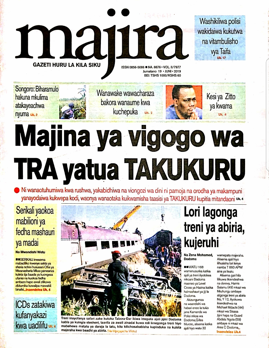 MagazetiPITIA VICHWA VYA HABARI KATIKA MAGAZETI YA LEO JUMATANO JUNI 19,2019 Last updated: 2019/06/19 at 2:57 AM Alex Sonna 7 years ago Share SHARE Alex Sonna June 19, 2019 June 19, 2019 Share this Article Facebook Twitter Email Print Previous Article Mloganzila yafanya upasuaji mkubwa wa kuondoa vivimbe kwenye ubongo Next Article FORCEACCONT NUSURA IONDOKE NA AFISA ELIMU KONGWA