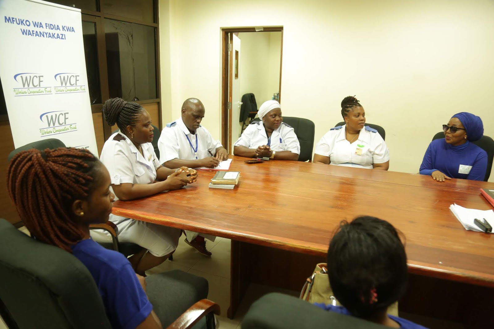 Baadhi ya wafanyakazi wa WCF wkaiwa kwenye mazungumzo na viongozi wa MOI.