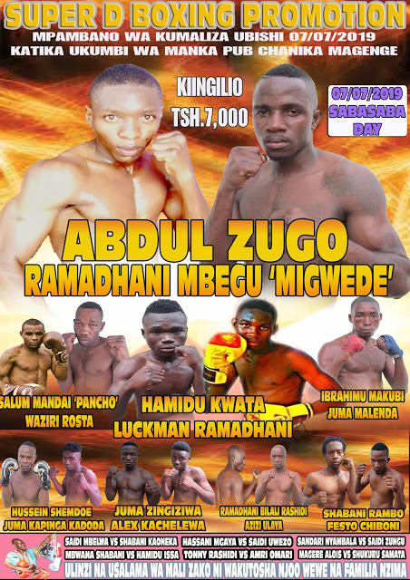 Super D aliongeza kwa kusema kuwa mbali na mpambano uho kutakuwa na mapambano mengine ambapo Hamidu Kwata atazipiga na Luckman Ramadhani na Salum Mandai ‘Pacho’ atazidunda na Waziri Rosta wakati Juma Zingiziwa ataoneshana umwamba na Alex Kachelewa juma Malenda atavaana na Ibrahimu Makubi na Hussein Shemdoe atazipiga na Juma Kadoda wakati Said Mbelwa atazidunda na Shabni Kaoneka na mapambano mengine mbalimbali ya vijana chipkizi
